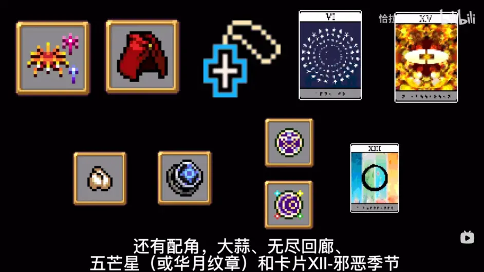 綜上所訴,我們這期的主角們出現了:他們分別是無雙盛典、緋紅聖骸布、玫瑰念珠、卡片VI-療愈的薩拉邦、卡片XV-黃金迪斯科,還有配角大蒜、無盡迴廊、五芒星或華月紋章和卡片XII-邪惡季節。