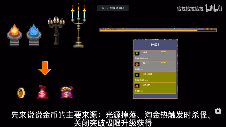 先來說說金幣的主要來源:光源掉落、淘金熱觸發式殺怪、關閉突破極限升級獲得。