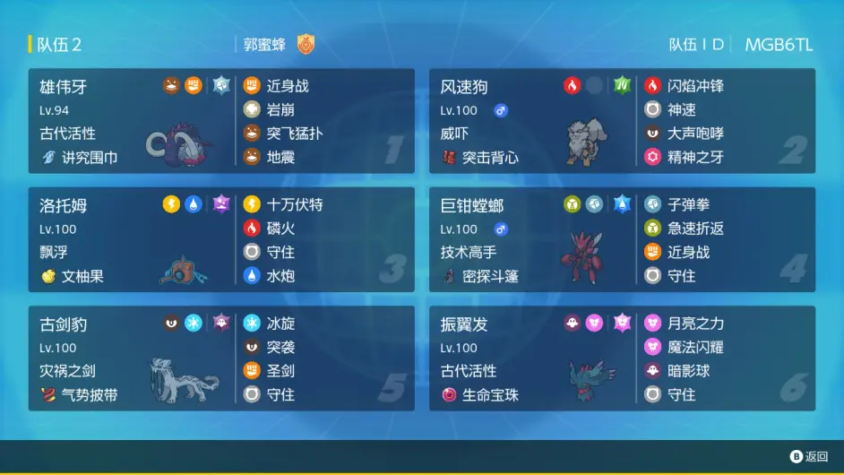 因為是平衡隊,選出靈活多變,基本思路是雄偉牙+風速狗首發,洛託姆螳螂放後排,如果能直接爽震就換洛託姆地震,之後利用神速子彈拳雙先制收割對手,爽局總歸是少數,還是要分析螳螂振翼發劍豹能否有好的發揮再進行選出。