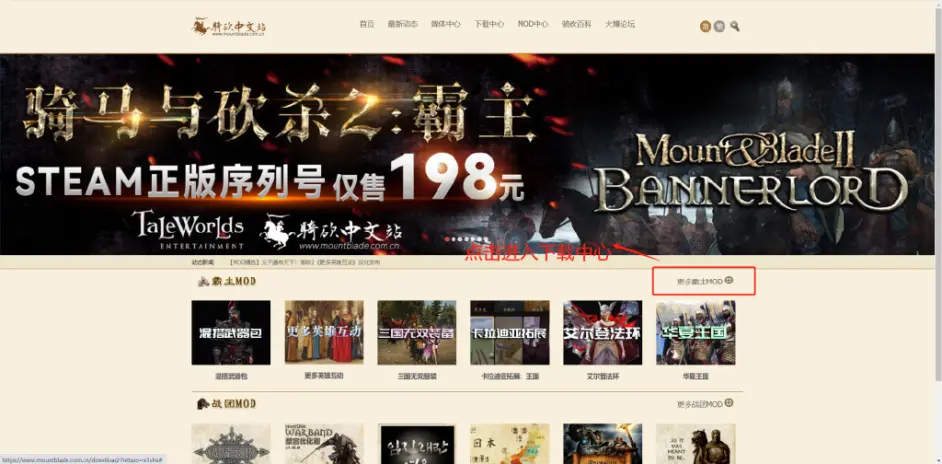 可以直接百度搜尋“騎砍中文站 下載中心”進入騎馬與砍殺中文站下載中心,搜尋“新小兵之路”進行下載。