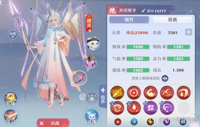 首先資質方面,氣血,物防資質都不低,而最出色的是靈力資質,達到1580點,所以做一隻法術靈獸正合適,當然更重要的是她的技能數量,是遊戲目前最高的六技能。