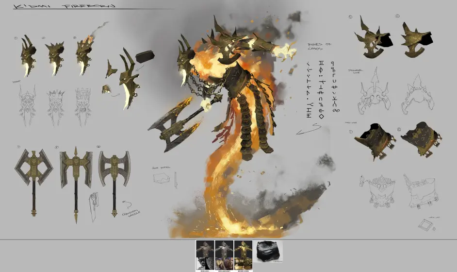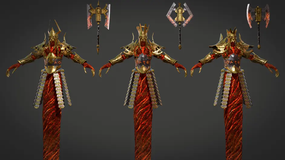 這些強大的惡魔火元素由惡魔精華與地表下的熱岩漿鍛造而成。它們是沒有思維的毀滅生物,由於創造者對力量的渴望而變得異常強大,是傳說中的戰士