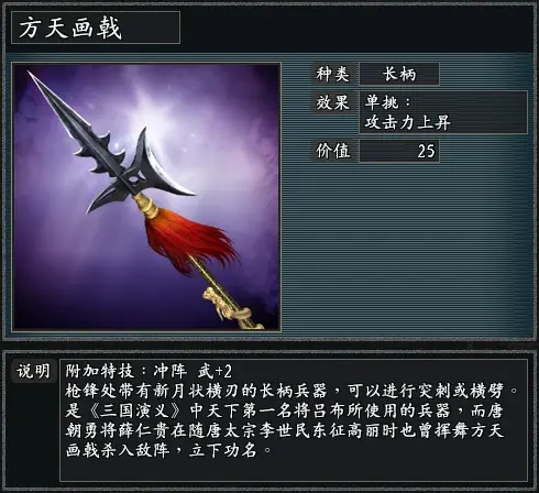 薛禮的初始寶物方天畫戟,現在附加特技變成了衝陣,也就是近戰部隊更容易觸發強制單挑,這樣與他的一階特技神箭形成了一個很好的聯動性。衝陣帶來的強制單挑,在初始武力值 100+ 的薛禮手中,將會最大化的觸發單挑,並通過單挑的勝利給予周邊敵軍部隊帶來莫名其妙的潰退。
