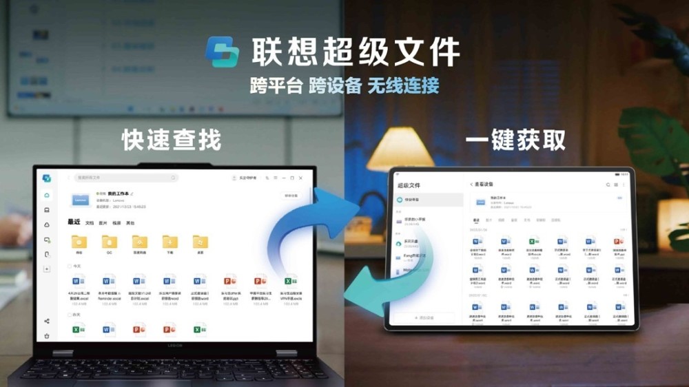 不僅如此,這次聯想天禧生態也為使用者帶來了全面升級的聯想超級檔案,支援在不同裝置間快速查詢檔案,並一鍵調取,多屏接力提升產品間的協作體驗。使用者在移動辦公場景下,可以通過Y900直接查詢調取家中電腦裝置的所有檔案,輕鬆一鍵下載、創作;在平板端創作的檔案,亦可以通過超級檔案的調取,在電腦端繼續接力協作。這都是依託於超級檔案跨平臺、跨裝置、無線連線的強大智慧技術,重構當下混合辦公多場景應用的多元使用需求,為使用者提供更高能的使用體驗。