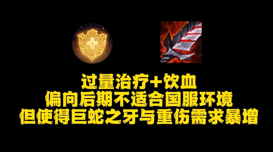 要說最近峽谷中最盛行的ADC套路,那莫過於過量治療+飲血的雙盾組合了。不過這個套路其實並不適合國服的排位環境,因為這一組合的核心思路就是拉滿ADC後期的生存能力,使得金克斯、月男等大核ADC有了更大的輸出空間。但是國服排位的環境,本身就不適合這些大核型ADC的發揮,同時這一套路將在13.6版本中也得到了削弱。