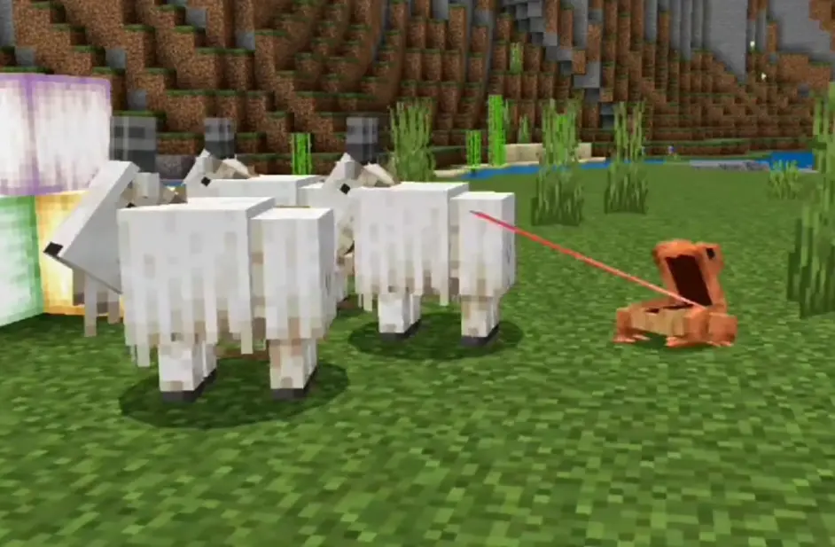 當然,在基岩預覽版1.18.10.26中青蛙可以吞下一隻羊這個特性只是曇花一現,這是因為開發者忘記刪除用於測試青蛙進食的程式碼所致。