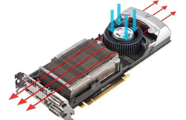 顯示卡的散熱方式一般依靠顯示卡散熱器。顯示卡散熱器通常分為扇葉、散熱鰭片、銅板和鍍鎳熱管。一個良好的顯示卡散熱器不僅能保持GPU在實際應用中進行高速運算,提高GPU核心使用率,還可以將GPU的溫度控制在合理的範圍,延長顯示卡壽命。