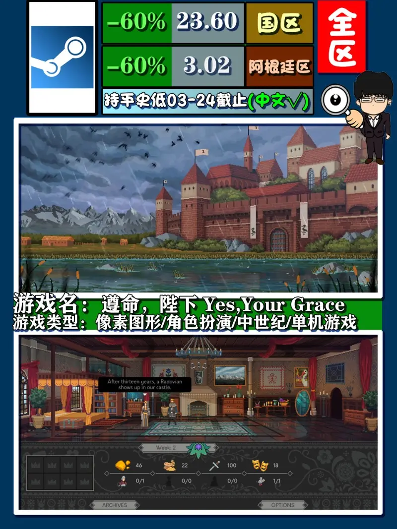 《遵命,陛下》,流程不長,4小時就能玩完的遊戲,單論娛樂程度,算的上中等偏上,非常豐富的劇情,作為國王要照顧到皇宮內外所有事,由於是單一結局,中間過多的選擇取向會讓很多玩家感覺是個騙局,老基德個人推薦別太上頭,享受過程,輕鬆選擇,單論原價位或許不適合,此次持平史低到是個不錯的選擇