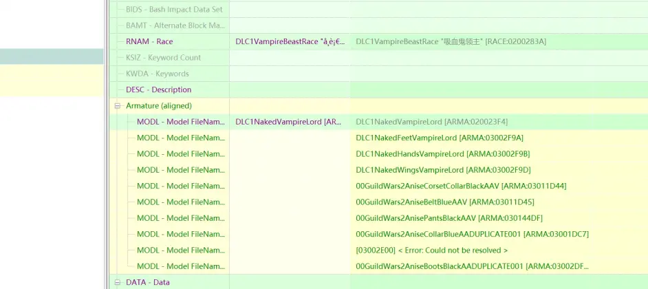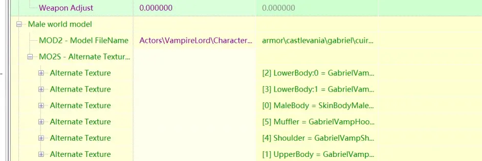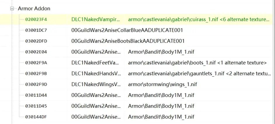這個armor addon裡面就是大君形態裝備的部件,分別對應哪個插槽都有