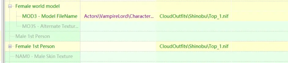 一般我們都是替換女性模型,所以用你自己喜歡的服裝的armor addon裡面的32插槽的服裝NIF來替換掉,第一人稱的照搬上面注意不要亂刪部位,有些部位對應男性美化,刪掉可能導致哈孔變身出問題,最簡單的辦法只換女性材質NIF,然後儲存進遊戲測試,老滾5嘛,不折騰始終是不會的,我也是自己摸索的,如有不對之處請多指教