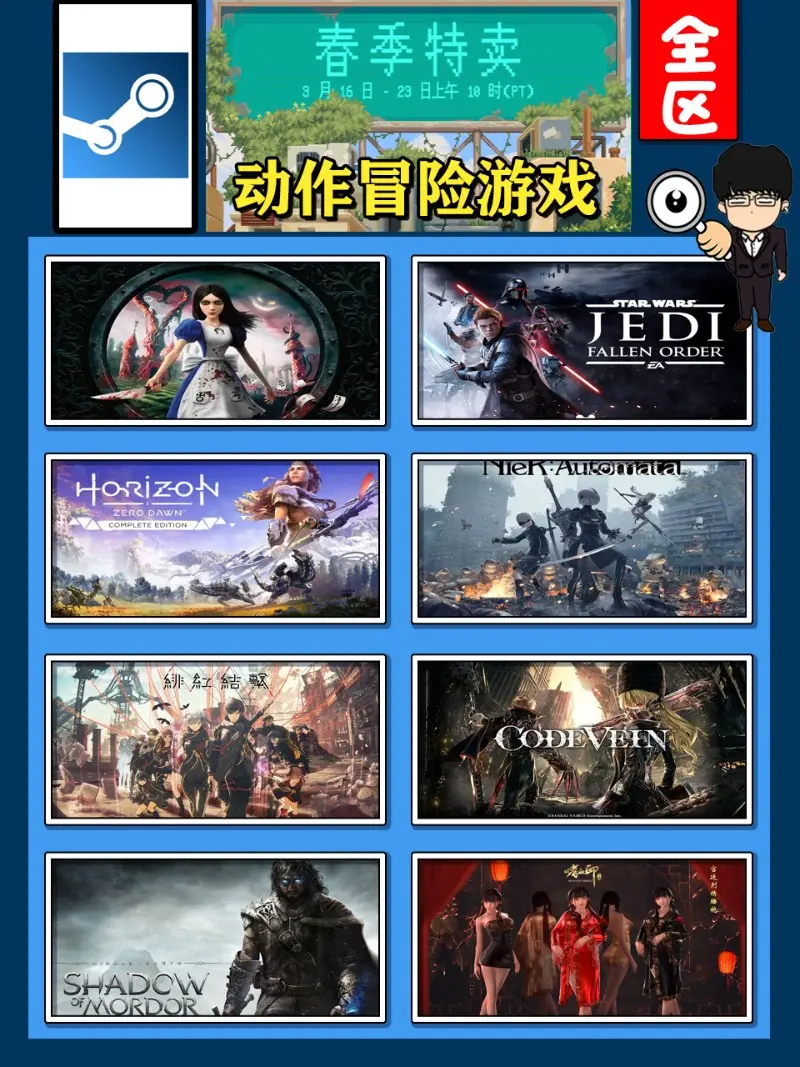 春季特賣選擇多,老基德來解你惑!此次steam春季特賣從3月16日持續到3月23日,老基德依舊老規矩給大家做好分類推薦,大家可以按照自己喜好對號入座,本期內容為動作冒險遊戲,下期為回合戰略遊戲,不要錯過!