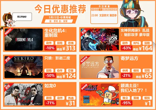 5.今日杉果一圖流:《只狼:影逝二度》史低¥124