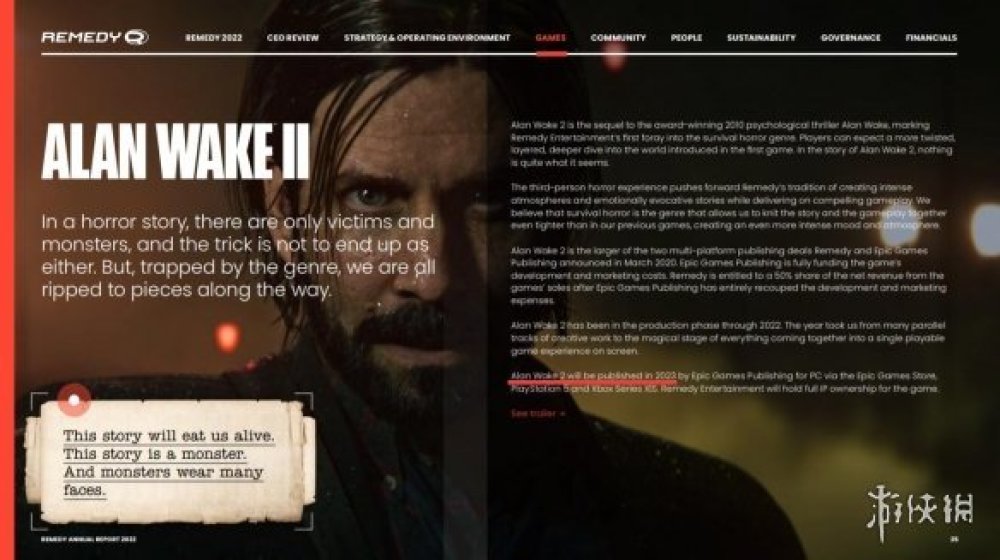 儘管《心靈殺手2》目前沒公開太多訊息,不過在官方最新公開的報告中顯示,《心靈殺手2》將會在2023年由Epic負責發行,登陸PC Epic商城和PS5、XSX|S。遊戲IP完全歸屬於Remedy所有。