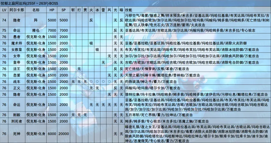憂鬱之庭阿達瑪(215F~254F)陰影資料