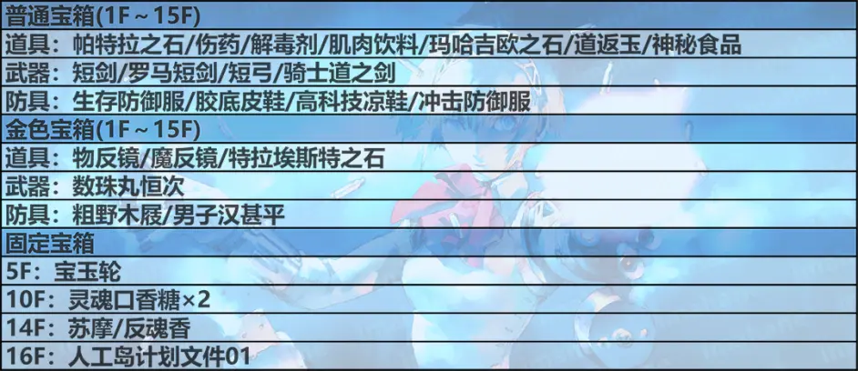 奇顏之庭阿爾卡(17F~39F)寶箱