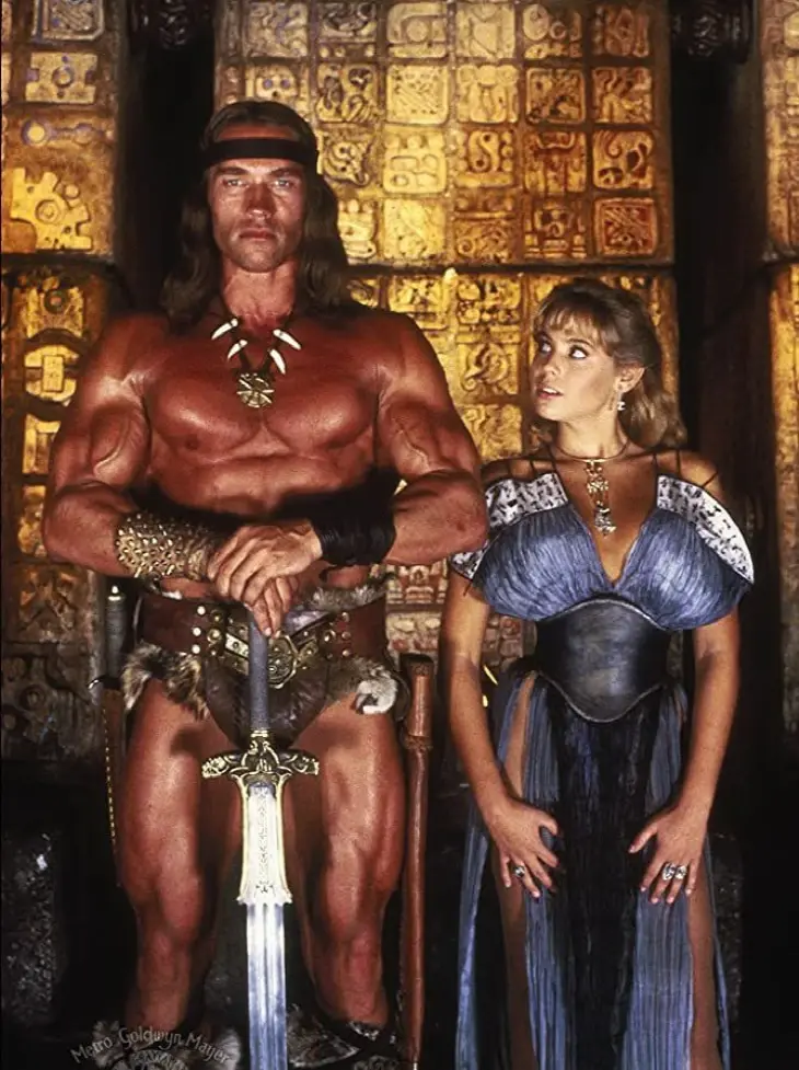 說起街機《戰斧》的起源,還要追溯到70年代的漫威漫畫《野蠻人柯南》——當然此柯南並不是每次出現都死人的眼鏡小學生,而是一位身壯如牛的筋肉英雄柯南。這位蠻荒之地成長起來的英雄,憑藉堅韌不拔的精神和鋼鐵般的肉體贏得天神的讚譽,並賜予王者之劍助他闖蕩江湖。因為當時這部漫畫備受追捧,因此到了80年代由年輕的阿諾州長主演了同名改編電影,老蟹當年也是看過這部硬碟的,州長那身肌肉比漫畫版的描繪更具力量感,還有就是女角們清涼復古的裝扮看得非常著迷。趁著電影走紅,當時的世嘉公司為了蹭熱度,便開發製作了這款街機《戰斧》遊戲。