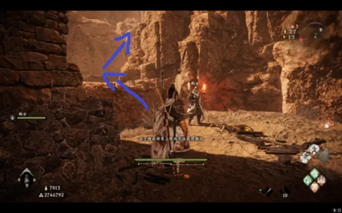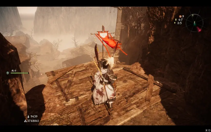 l 回到原來的位置,重新向左走。左邊清完小怪之後,可以再臺子的一邊發現一條小路,順著小路走,跳過臺階可以發現藏在裡面的另一面大旗。
