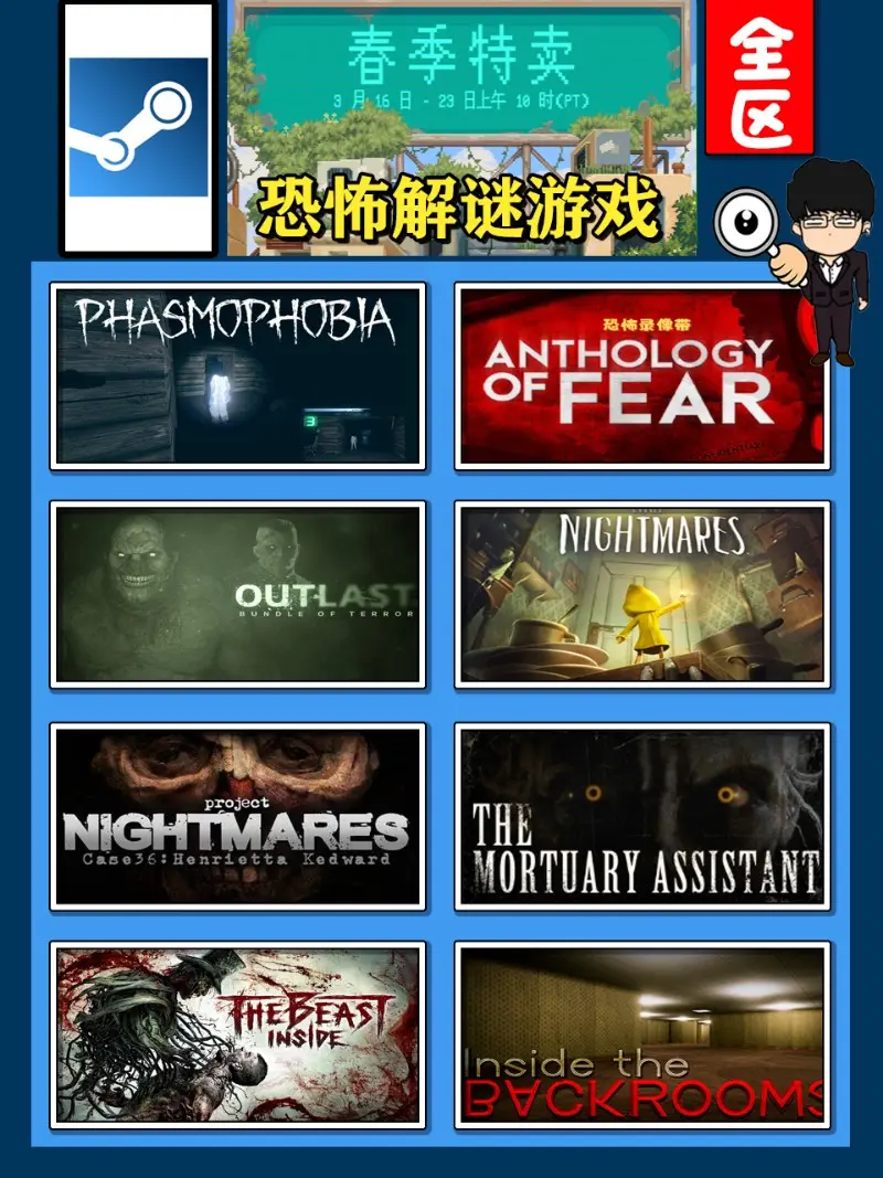 春季特賣選擇多,老基德來解你惑!此次steam春季特賣從3月16日持續到3月23日,老基德依舊老規矩給大家做好分類推薦,大家可以按照自己喜好對號入座,本期內容為恐怖解謎遊戲,下期為畫素圖形遊戲,不要錯過!