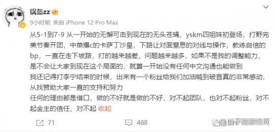 這輪BO3,IG顯得有些經驗不足。第一場在大優勢的情況下無法終結比賽遭到逆轉;第二場又因為壓力過大,未能保持一顆平常心而遭到橫掃。因為這場失利,IG目前處於積分榜第11位。就連IG戰隊的經理,都第一時間發微博向大家道歉。