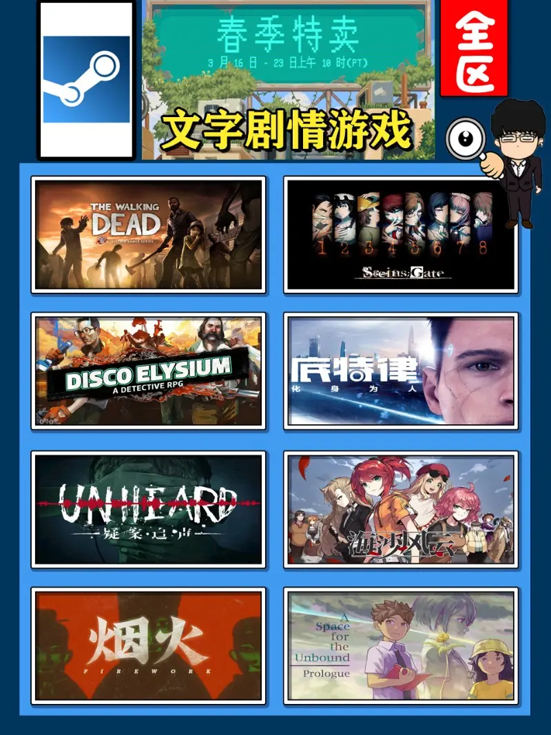 春季特賣選擇多,老基德來解你惑!此次steam春季特賣從3月16日持續到3月23日,老基德依舊老規矩給大家做好分類推薦,大家可以按照自己喜好對號入座,本期內容為文字劇情遊戲,下期,額,本期為最後一期,今年steam平臺每個月都有相關類似遊戲節,如果喜歡這些內容,還望大家多多關注老基德,每個月都會保持更新,希望大家喜歡!