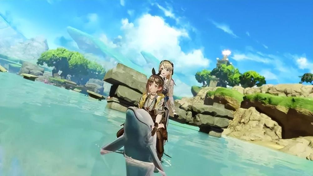 GUST這次有意往開放世界形式發展,設計了無縫接入的大地圖。不再是各種分割的小地圖,在島嶼之間也增加了小船、軌道,甚至海豚等移動方式。