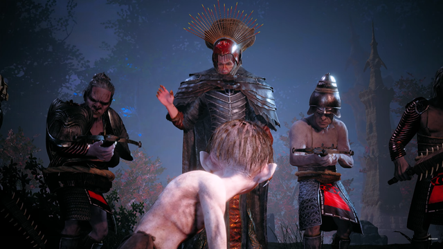實際上,《魔戒:咕嚕》也的確將自己在敘事之外的重心,放在了傳統的“攀爬跳躍”和“潛行暗殺”上,希望能夠藉此強調咕嚕的靈活與狡猾。在本次我們體驗到的大部分內容中,咕嚕都面臨著一種十分困難的處境,玩家既要目睹他是如何落入索倫的手中,又會看到他是怎樣在接受了甘道夫等人的審問後逃離幽暗密林的。