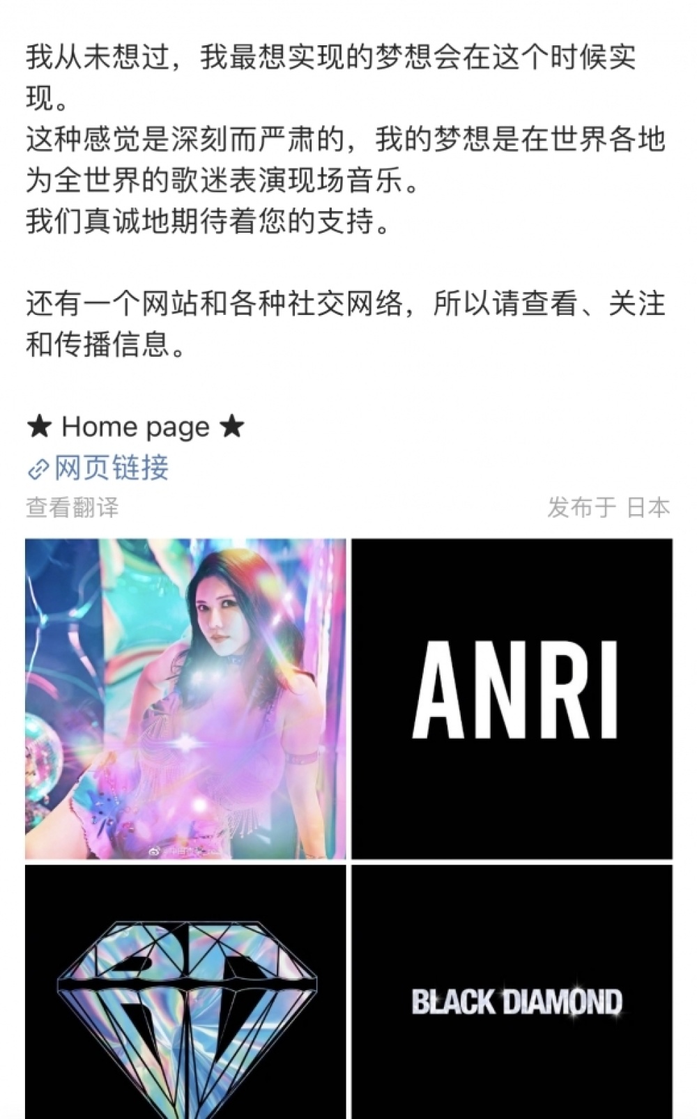 隔天,這個名叫“Black Diamond”(黑鑽石)的女子團體便正式公佈了,而沖田杏梨也將藝名更改為“ANRI”,女團除了她之外還有另外4名現役AV女優。