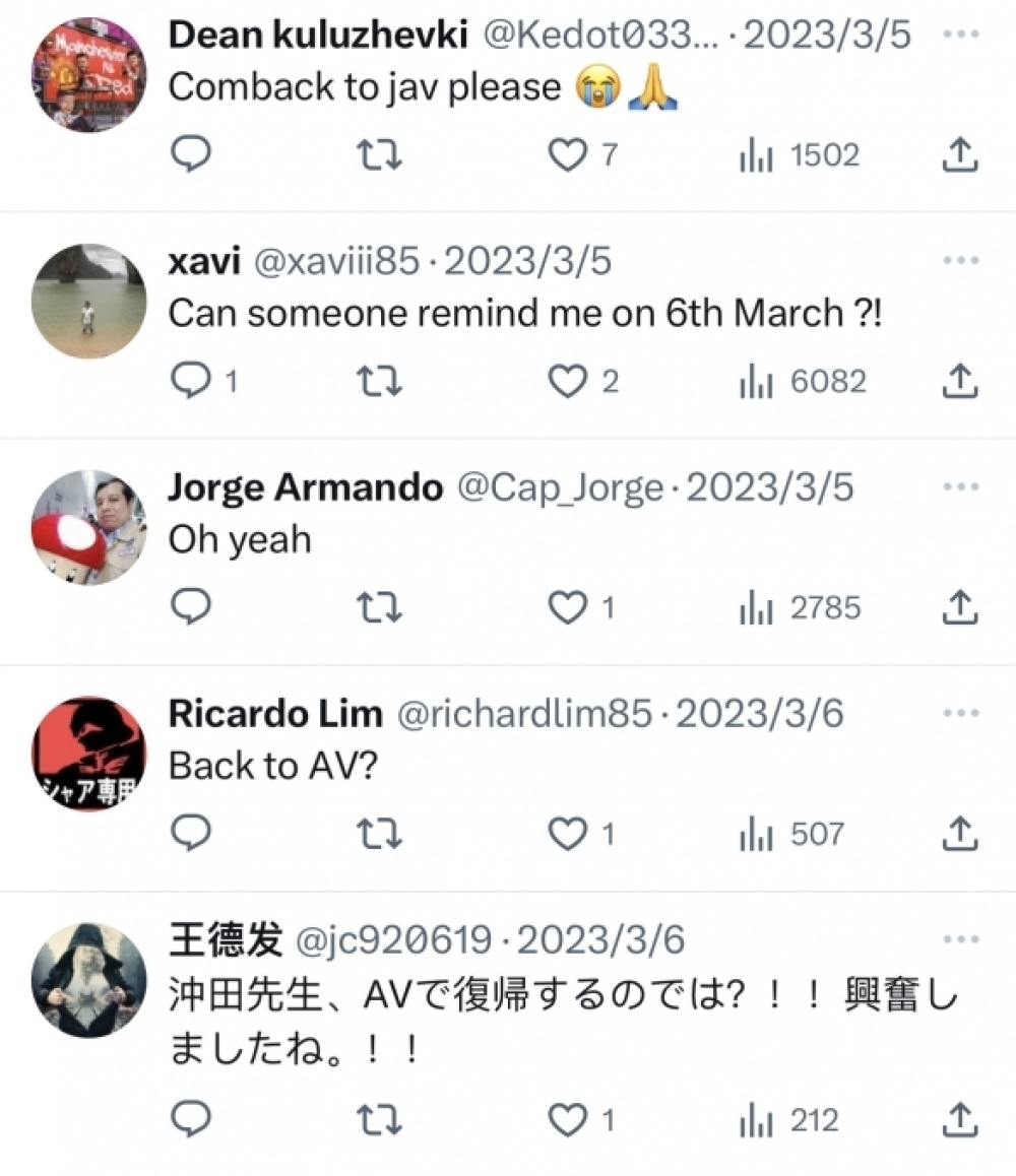 大夥兒雖然有些失望,但也不是沒有心理準備。畢竟在退役7年,OnlyFans也做得風生水起的前提下,沖田杏梨重新投身AV事業的可能性幾乎無限接近於零。