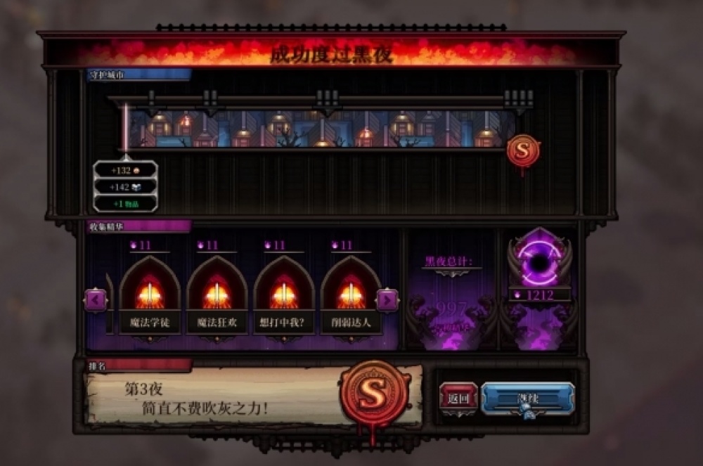 在一輪輪遊戲中逐步解放可能性,一點點變強的過程,就是肉鴿類的樂趣所在了。基本上,每撐過一兩個晚上,你都能得到足夠解鎖新專案的資源量,整體的興奮感和節奏是控制得不錯的。
