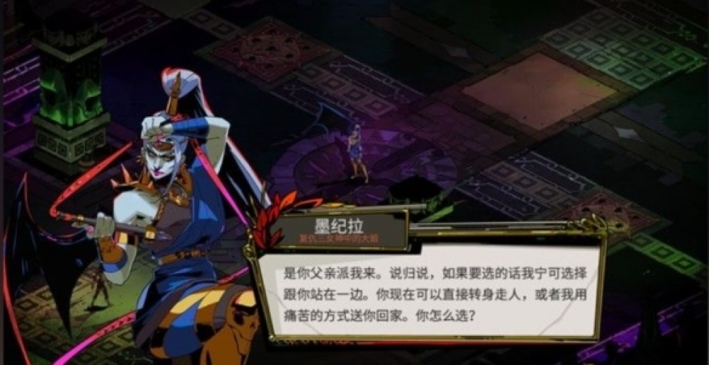 在早期ea的版本中,這兩個謎語人主要負責在你不斷死,不斷達成成就的時候,才給予你更多的裝備解鎖,更多的建築物解鎖,會讓遊戲陷入一種一直死亡才能成長通關的怪圈;好在正式版裡已經對這樣的設計進行了改動,備戰階段時就可以在女神那裡換取各種各樣的增強,解鎖各種武器裝備和建築。