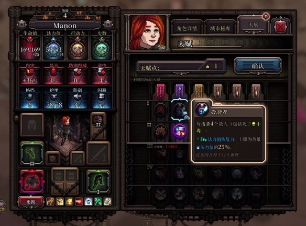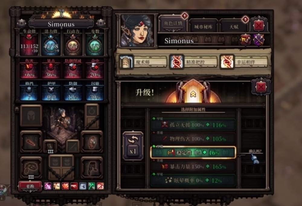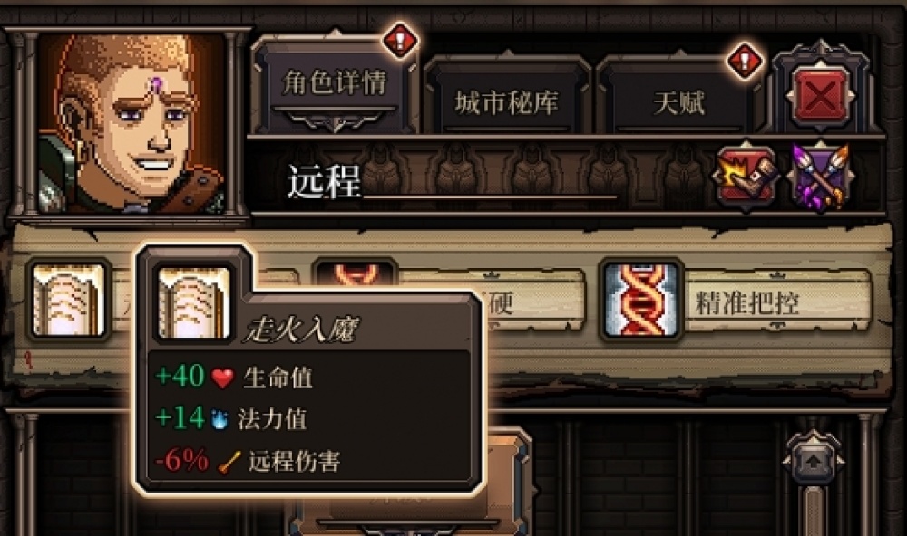 遊戲多樣化的養成內容同樣提供了很多趣味,比如人物初始會攜帶3個隨機特質,可能是正面、負面的各種buff,或者是具有特殊效果的特性詞綴。像是裸體主義者顧名思義就是不能穿護甲,但會增加移動步數;而走火入魔的特性會讓角色的生命值增加,但削減了遠端傷害等等,這些特效能讓選取英雄進行養成時更加有趣和遊戲性,確實是挺不錯的設計。