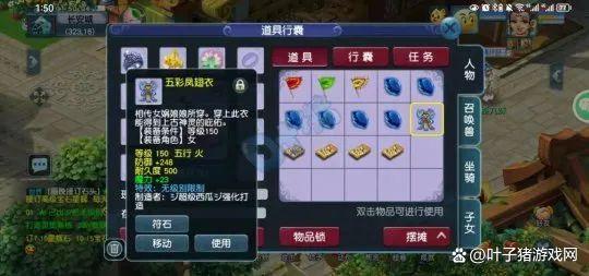 這件女衣防禦248,高出國標2點,附加魔力23,雖然整體一般,但可以通過後天熔鍊彌補不足。它非常適合X9神木、魔王、龍宮、東海淵等門派使用,能夠提升不錯的法傷屬性,而且衣服位的5孔組合也是相當重要的。