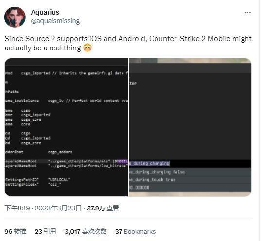也有玩家在評論區向Aquarius指出,在移動裝置上增加fps的這一指令是《刀塔霸業》遺留下來的,也可以在《Dota2》中找到。目前我們尚不知道情況真假,V社也尚未宣佈任何將《反恐精英2》移植到移動裝置的計劃。
