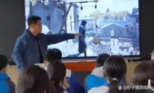 在喊出“現在就帶大家身臨其境地感受一下這段歷史”後,老師拿出了PS4手柄。並接連展示了《刺客信條》系列有關文藝復興和法國大革命的相關劇情橋段。期間,許多同學不自覺就將身體向前微傾,因為這種生動的內容表現形式,更容易讓他們產生興趣。