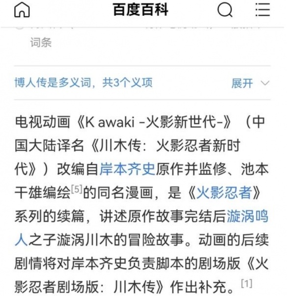 先是《博人傳》的百科次條經歷了多次的修改,從一開始的《博人傳》變為《川木傳》,從漩渦博與川木變成了大筒木博人與漩渦川木;