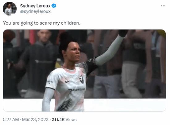 可以看出,EA不僅搞錯了一些球員的標誌性髮型,甚至連膚色也沒能還原。Sydney Leroux直言:“這會嚇到我的孩子們”。