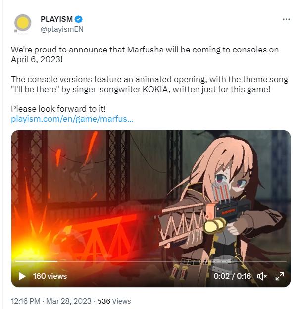 發行商PLAYISM和開發商hinyari9宣佈,曾於2021年8月 26 日登陸Steam平臺的快節奏射擊遊戲《熔鐵少女(Marfusha)》將於4 月 6 日在PlayStation 5、PlayStation 4、Xbox One和Switch上推出。Steam目前為特別好評(93%)。