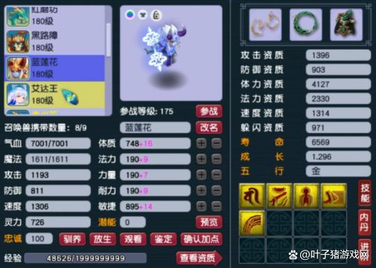 第四隻寶寶為5技能淨臺千速,即便洗了閃現特性後,氣血也高達7001點,價效比非常高。
