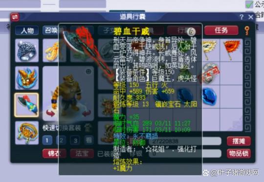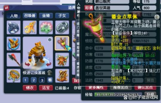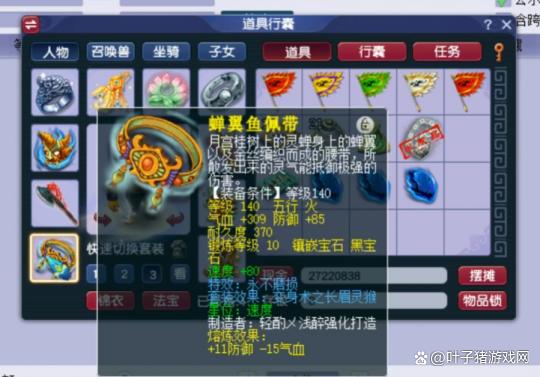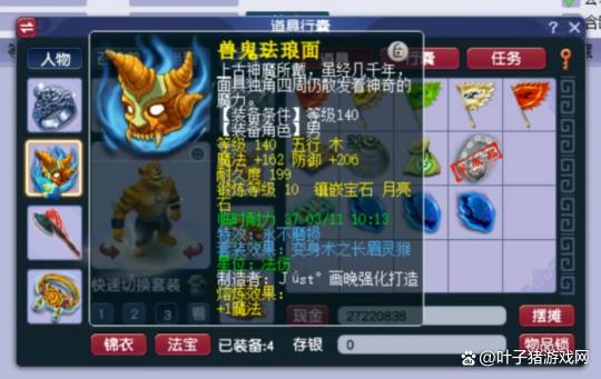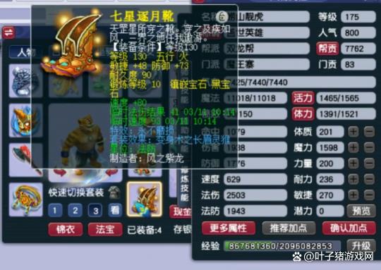 衣服位置為130級初防248,敏魔雙加46的不磨、長眉靈猴,鑲嵌了12鍛舍利子,算是不少法系玩家夢寐以求的任務裝備了。
