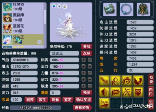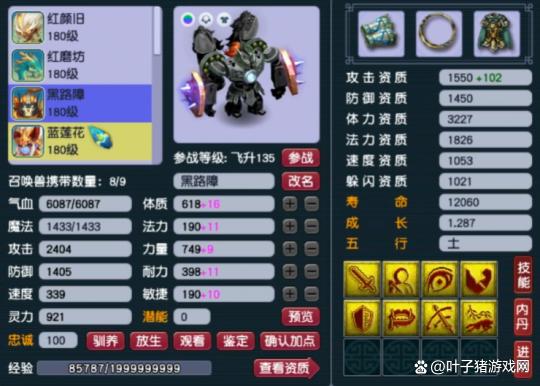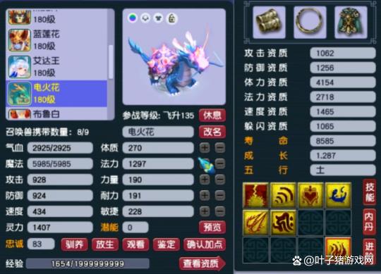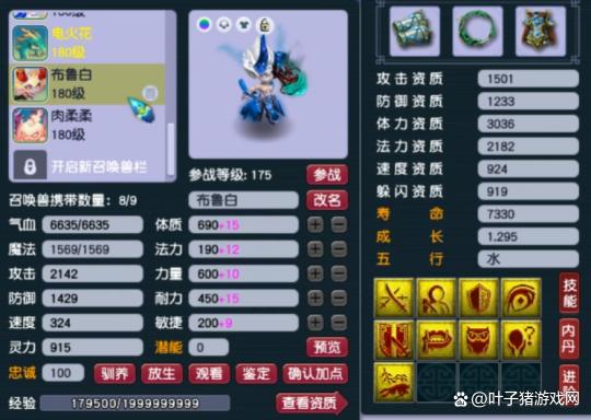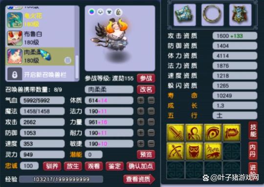 第二隻召喚獸是4技能法防卡速龍龜,資質方面非常不錯,平時拿來打幫戰完全沒有問題。