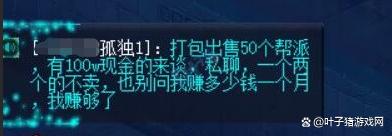 有位“幫派商人”見狀,就立馬坐不住。通過傳音來售賣在手的50個幫派,並揚言有100W的才有資格來談生意。為什麼要放棄這條生財之路也很簡單,因為賺夠了。
