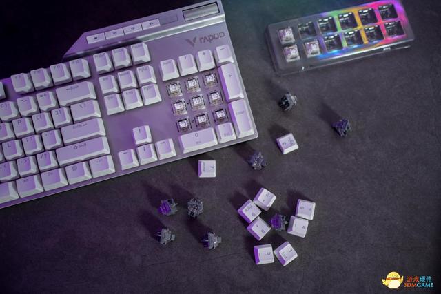 除此之外,雷柏V700DIY機械鍵盤的軸體設計自然是至關重要的。除了搭載自主線性快銀軸外,雷柏V700DIY還支援熱插拔,使用者可自定義更換熱插拔軸。同時,雷柏自主熱插拔線性彈白軸KA-12也是一大亮點,它比快銀軸觸發更輕快迅速,觸發壓力也更輕。在使用過程中,它讓我感受到了更加流暢的操作和更好的遊戲體驗。