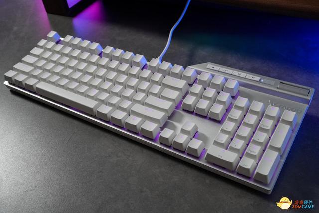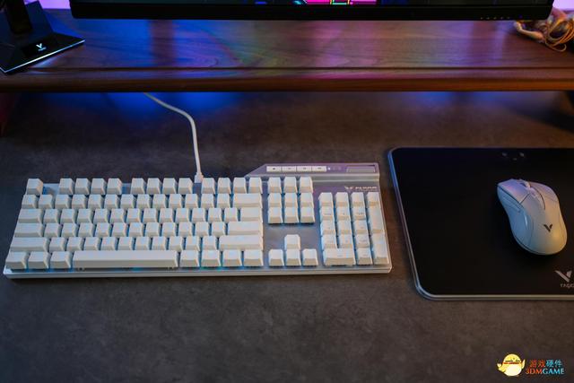 雷柏V700DIY機械鍵盤的外觀非常獨特,具有現代感和科技感。銀色機身搭配的是純白色的鍵帽,鍵帽採用了白色PBT雙色注塑鍵帽,並且鍵盤採用了時下非常流行的懸浮設計,方便我們插拔鍵帽、更換軸體,並且日常打理起來也更加方便。在開啟背光功能後,按鍵透光均勻,呈現更好的燈效。鍵帽的手感更加細膩,而且耐久性更強,在輸入以及遊戲操作時,帶來非常舒適的手感反饋。同時,鍵帽的設計也非常簡潔,沒有過多的花哨裝飾,讓整個鍵盤看起來非常乾淨利落。