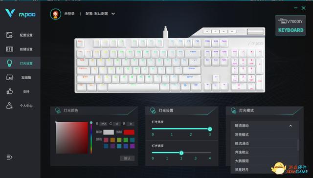 俗話說的好,無RGB不電競,雷柏V700DIY機械鍵盤怎麼能缺少靈魂的RGB燈效呢!雷柏V700DIY預設搭載了19種RGB動態燈效。通過右上角的“M”鍵切換燈光效果、燈光亮度。想要進一步客製化對鍵位的燈效可以在官網下載專用驅動軟體後,自定義更多酷炫RGB燈效。