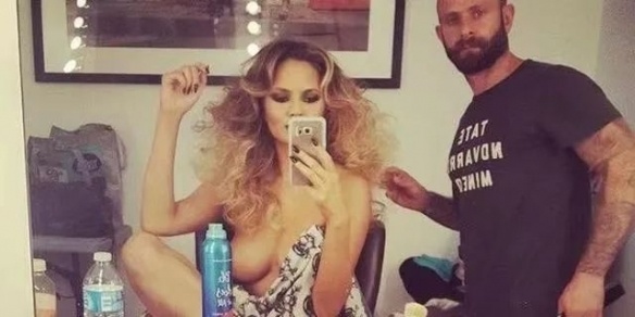 或許是受到了刺激,另一位歌手John Lehend也在ins上面釋出了一張頗為裸露的照片——其實是他老婆Chrissy Teigen發的。
