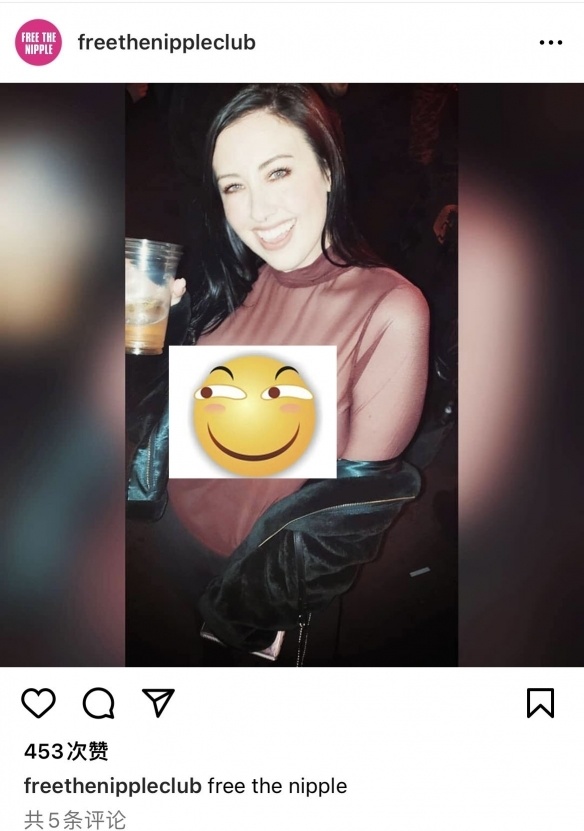 下面這位女子因為右胸的乳頭被切除,所以可以直接裸露胸部發圖而不需要遮住那一“點”(???)