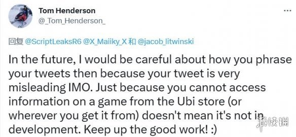 Tom Henderson評論稱:ScriptLeaksR6的內容非常具有誤導性,沒挖到相關資料,並不能說明遊戲沒有開發。