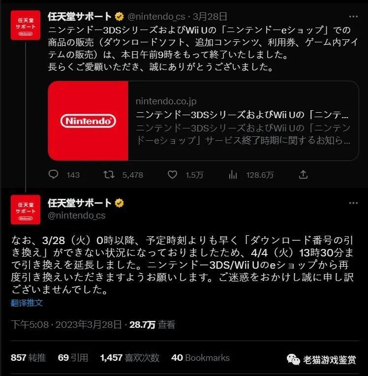1.任天堂 3DS 和 Wii U 線上商店已關閉,但仍可在4月4日前兌換遊戲