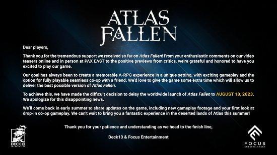 發行商Focus Entertainment發文宣佈,奇幻動作RPG《塵封大陸》將延期至8月10日發售。本作原定於5月16日發售。