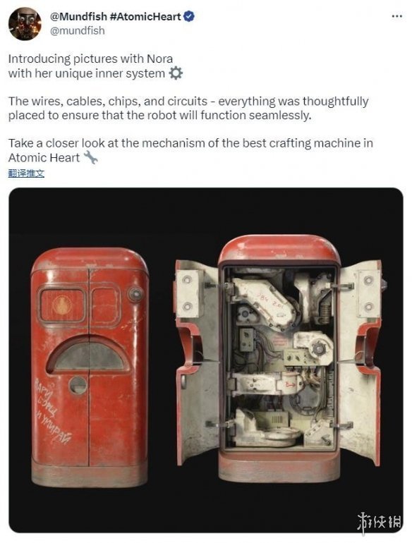 官方表示,冰箱諾拉內部有著電線、電纜、晶片和電路,所有一切都是精心佈置的,從而確保這個機器人能夠完美穩定地執行。官方還表示冰箱諾拉是《原子之心》中打造得最棒的機器。